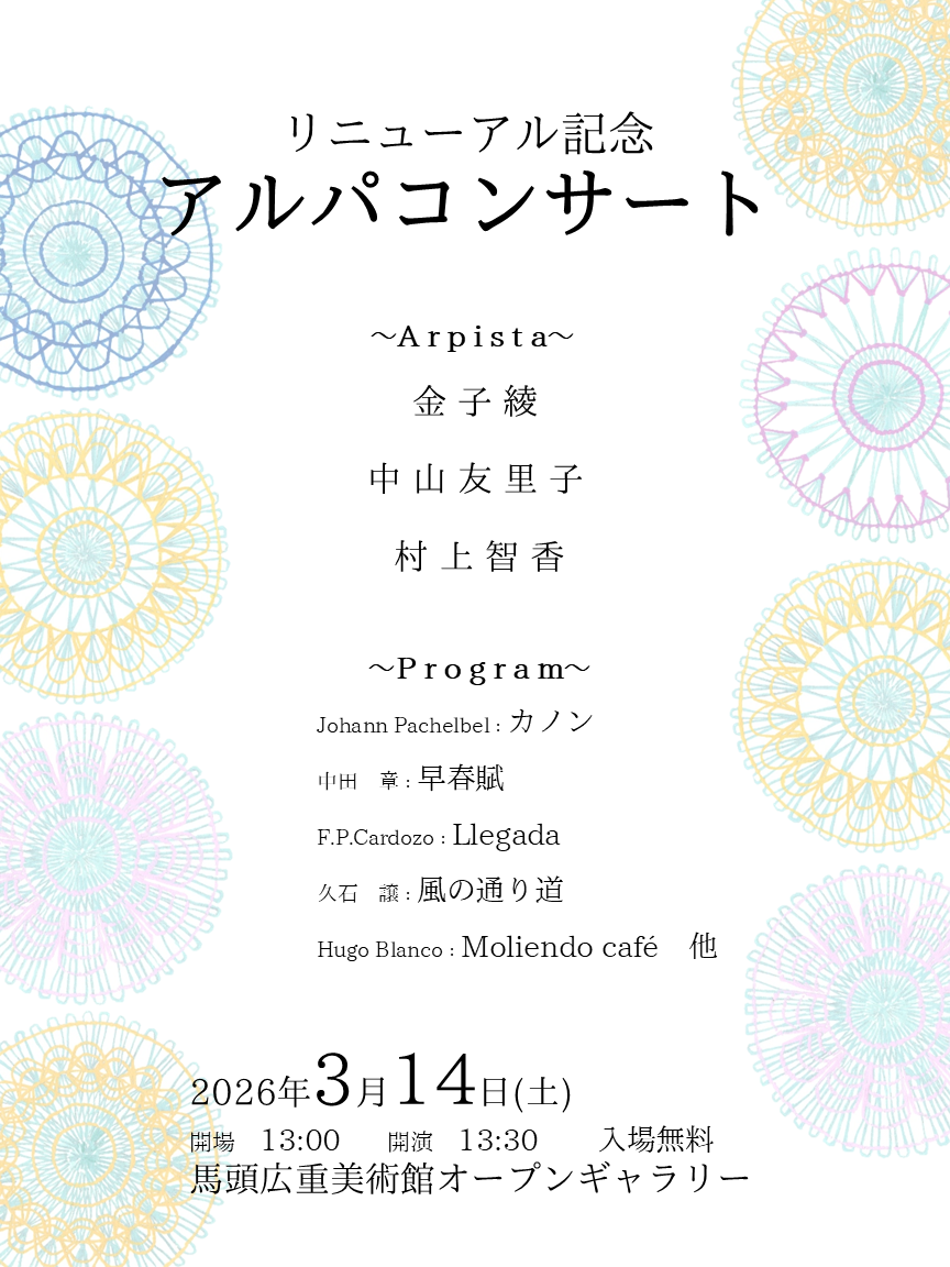 リニューアル記念アルパコンサートのお知らせ